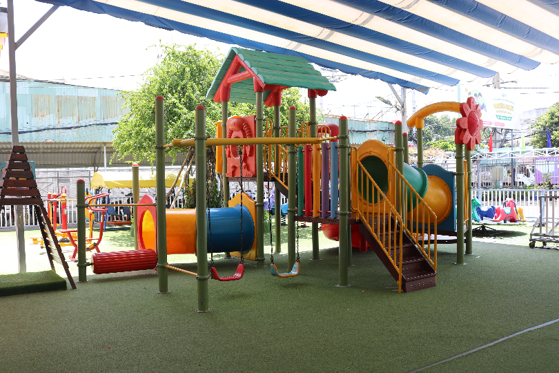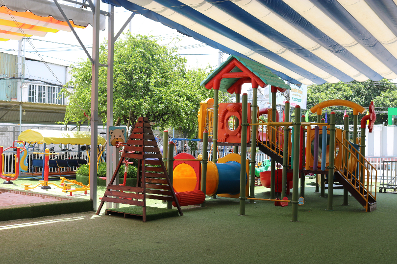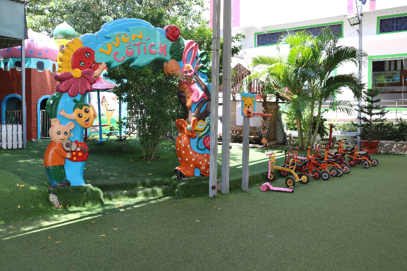 - Cơ sở vật chất hiện đại với tổng diện tích lên đến 3000m2, trong đó diện tích sân chơi ngoài trời hơn 300m2.